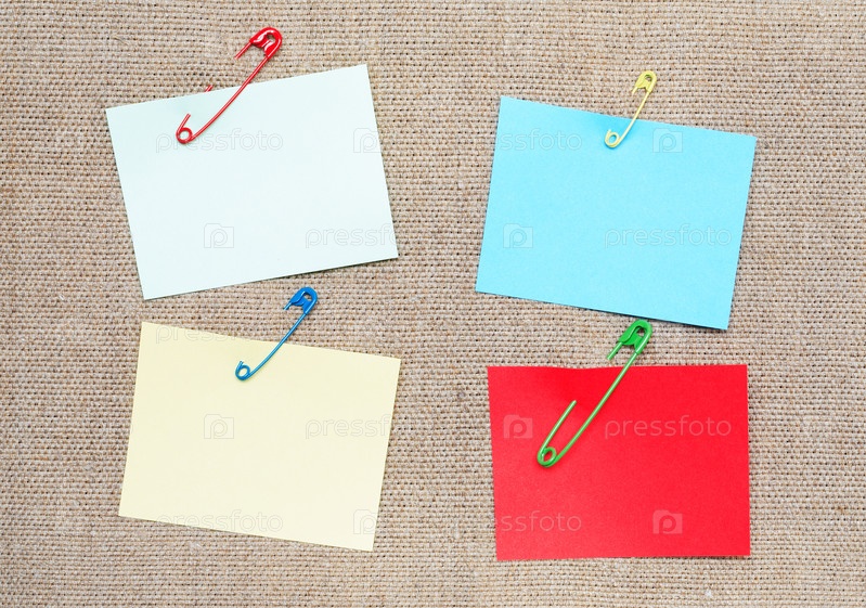 Стикеры, прикрепленные к холсту булавками