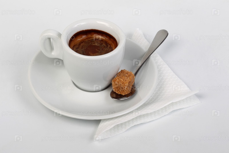 Чашка кофе и кусок сахарного тростника