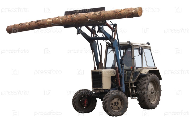 Трактор на погрузке бревен