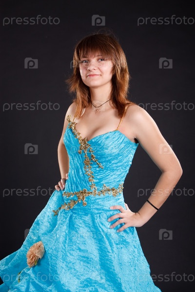 Девушка в голубом платье на черном фоне