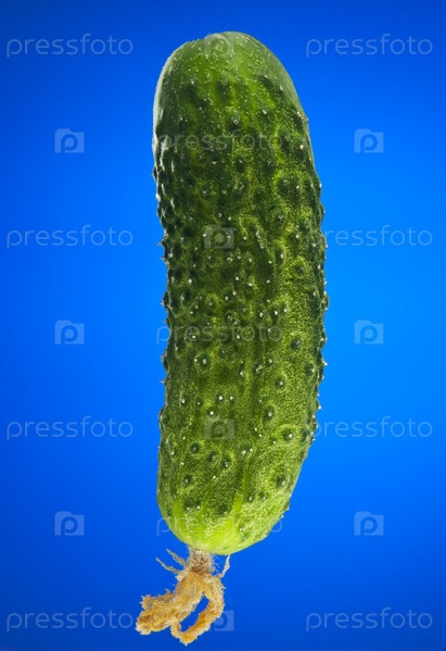 Зеленый огурец на синем фоне