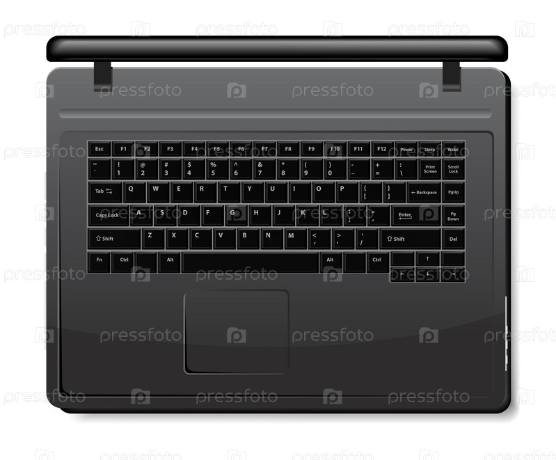 Черный ноутбук изолирован на белом фоне (вид сверху)