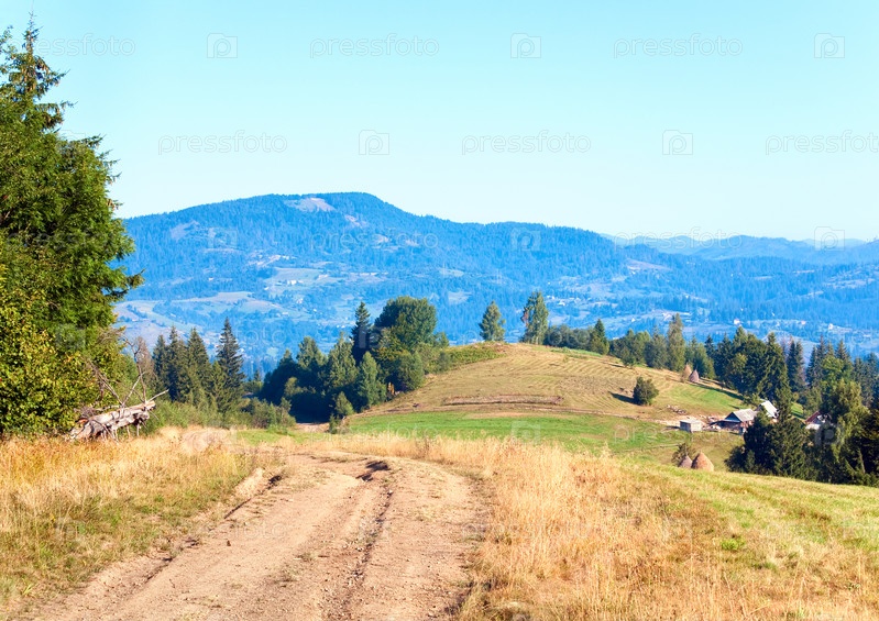 Осенний пейзаж с проселочной дорогой в горах