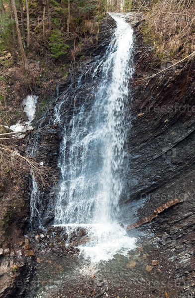 Водопад в диких карпатских лесах