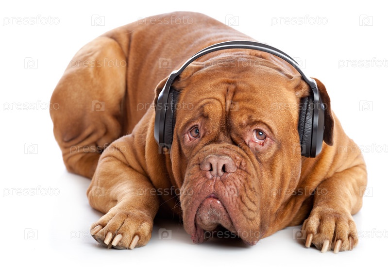 Милый французский мастив в наушниках