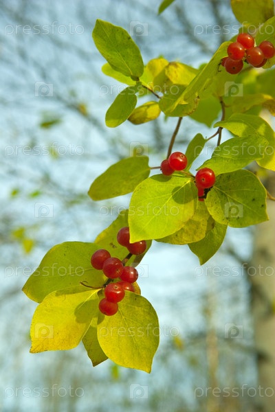 Красные ягоды ореховой капусты на ветке