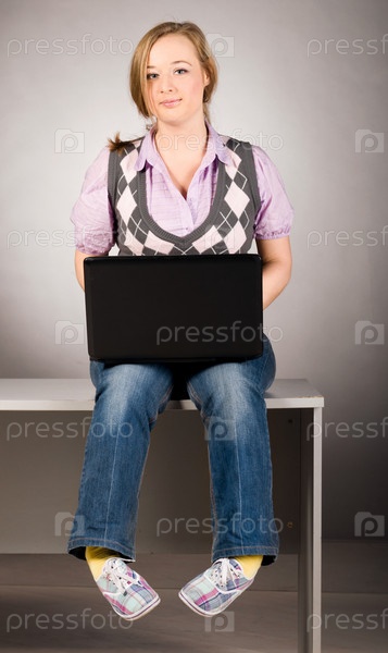 Красивая девушка с ноутбуком