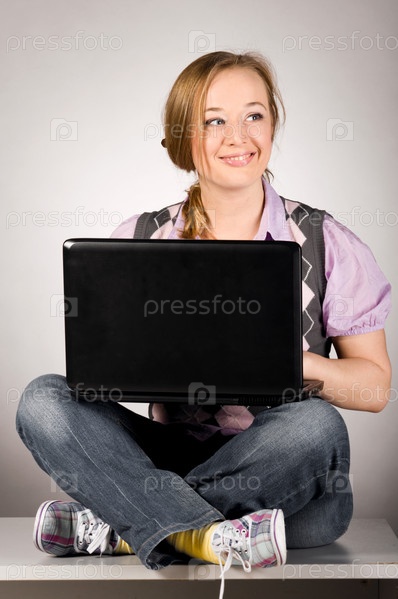 Красивая девушка с ноутбуком