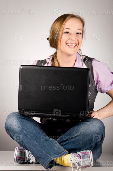 Красивая девушка с ноутбуком