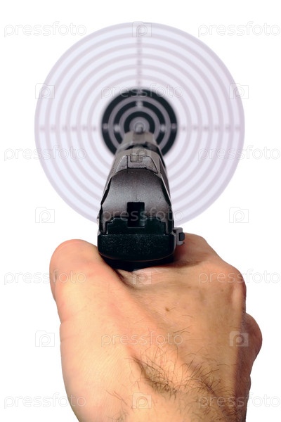 Рука с пистолетом, наведенным на цель