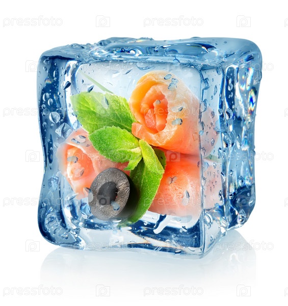 Рыбные рулетики в кубике льда