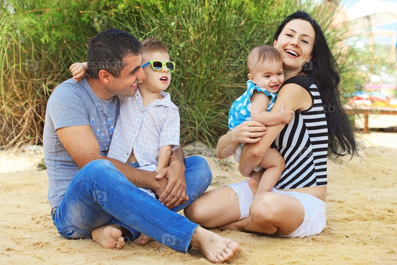 Счастливая семья на пляже