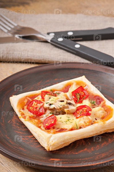 Пицца с курицей, томатами и грибами