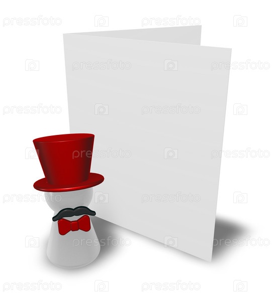 Человек в шляпе и баннере - 3D иллюстрация
