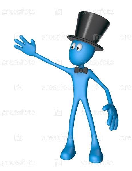 Человек с цилиндром показывает что-то - 3D иллюстрация