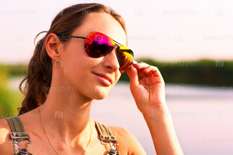 Портрет девушки в солнцезащитных очках на открытом воздухе