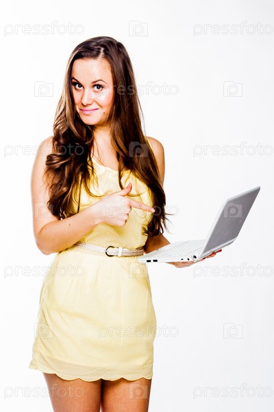 Молодая и красивая женщин с ноутбуком