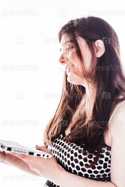 Молодая и красивая женщин с ноутбуком