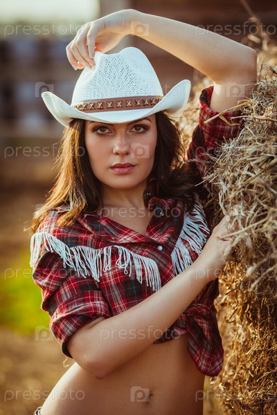 Модель позирует на ферме