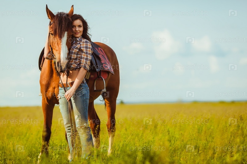 Женщина позирует с лошадью