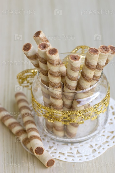 Вафельные палочки с кремом в чашке