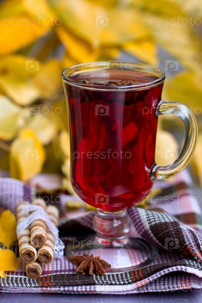 Красный чай и осенние листья