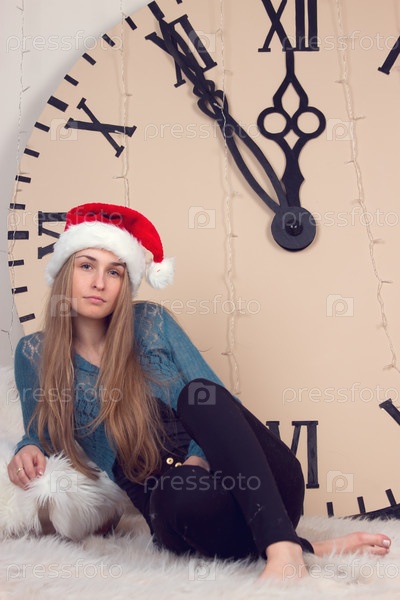 Девушка на фоне огромных часов