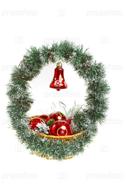Декоративная новогодняя корзина на белом фоне