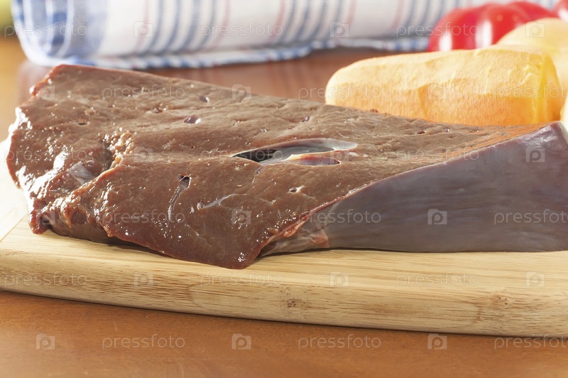 Кусок сырой говяжьей печени