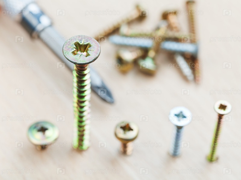 Отвертка и шурупы разных размеров