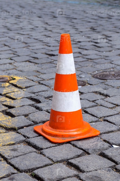 Дорожный конус и брусчатка