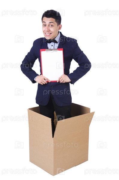 Мужчина с планшетом на белом фоне