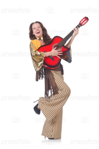 Женщина с гитарой в мексиканской одежде