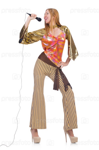 Женщина в испанской одежде с микрофоном