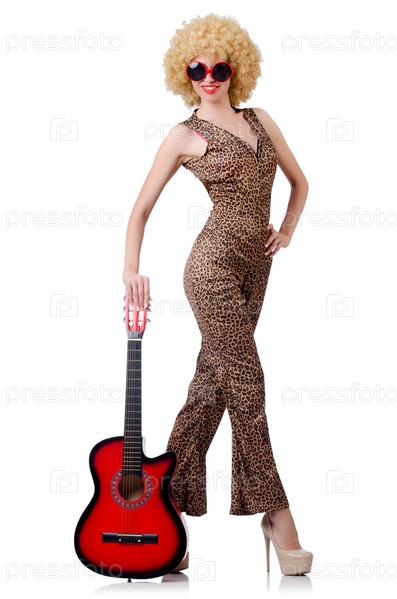 Молодая певица с прической афро и гитарой
