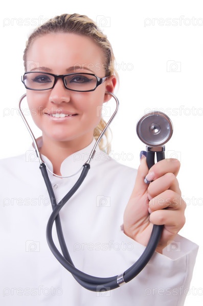 Женщина-врач, изолированная на белом фоне
