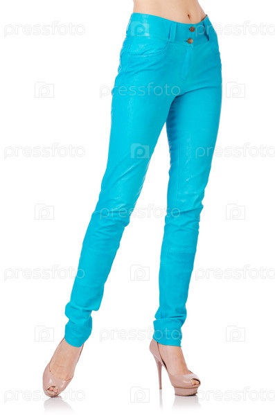 Женские ноги в синих брюках