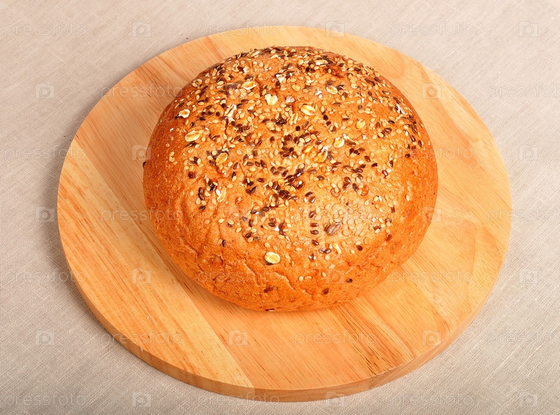 Круглый пшеничный хлеб со злаками на деревянной доске