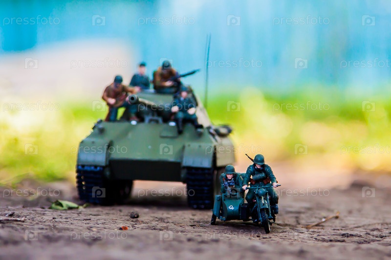 Немецкий тяжелый танк пантера и мотоцикл с коляской