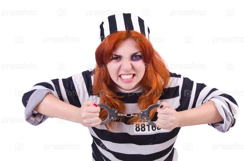 Заключенный в полосатой форме на белом фоне