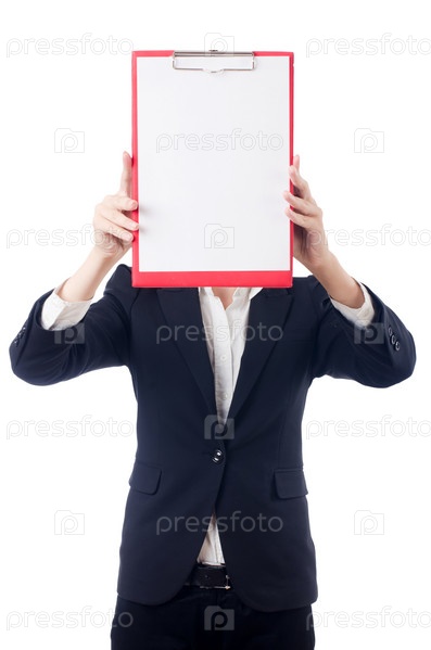 Женщина с планшетом, изолированная на белом фоне