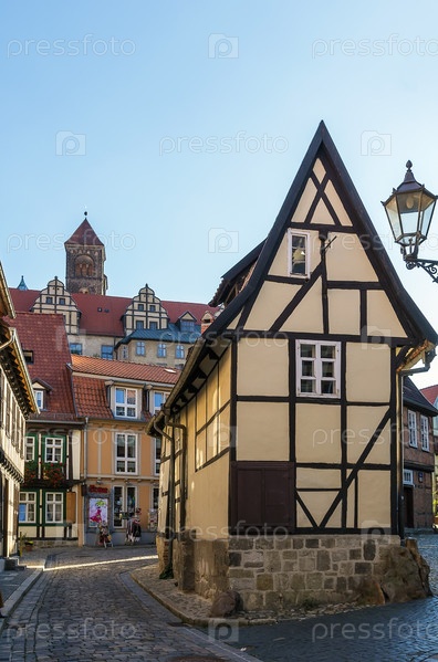Улица с фахверковыми домами в городе Кведлинбург, Германия
