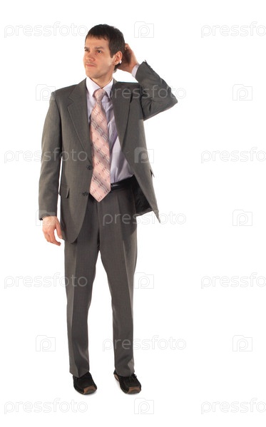Деловой мужчина стоит и усиленно размышляет