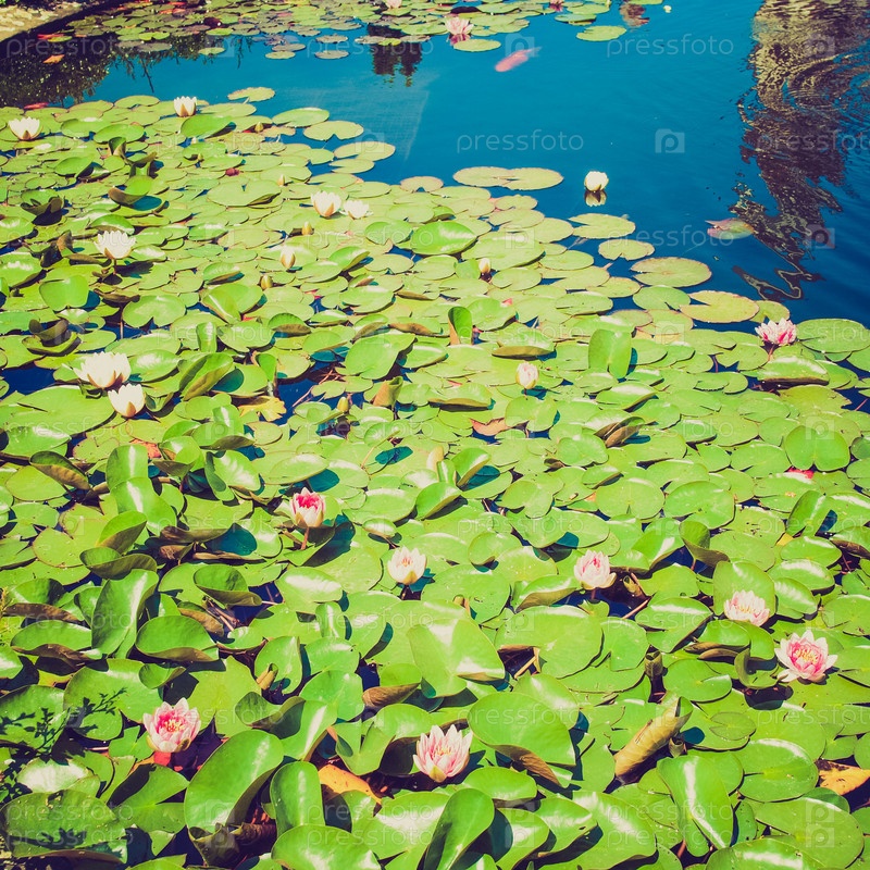 Винтажная фотография кувшинок в пруду