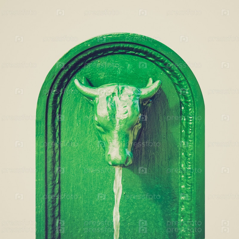 Винтажная фотография фонтана Маленький бык в Турине, Италия