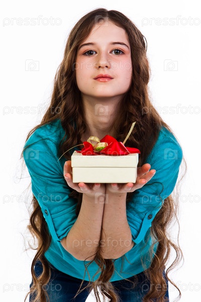 Красивая девочка с подарком