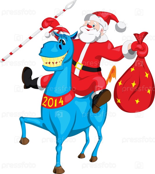 Дед мороз с мешком на синем коне