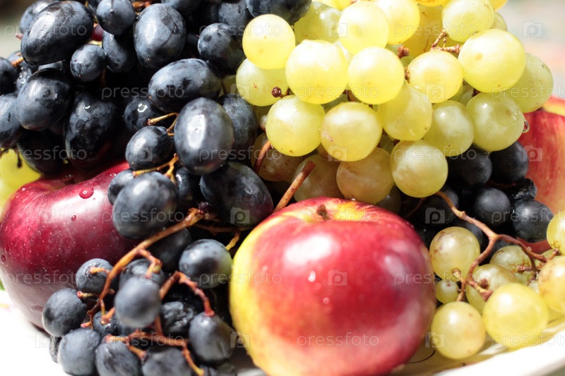 Виноград и сочные яблоки как иллюстрация сбора урожая