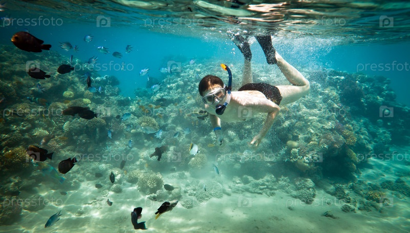 Молодой парень, плавающий под водой