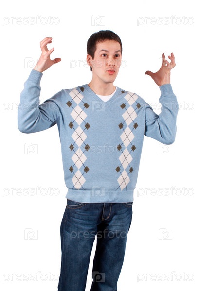 Мужчина рассказывает что-то интересное, держа руки возле головы